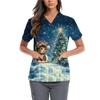 Women's Cute Bow Printed Work Clothes V-neck Double Layer Pockets Basic Short Sleeve Top Pullover