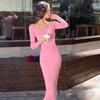 European and American Sexy Square Collar Long sleeve dress Women Autumn and Winter New Solid Slim fit Slimming Sheath Fishtail Formal Dress Long dress