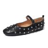Sheepskin spring and summer new fashionable versatile one-word with rivet buckle leather soft Mary Jane ballet single shoes women