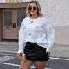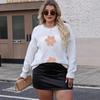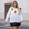 Plate-size Women's Round-neck Pullover Top, Autumn Hand-hooked Pattern Patchwork T-shirt
