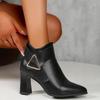 Women's Winter Boots Fashion Square Toe Side Zipper High Heels Belt Buckle Office and Career High Quality Short Plush Ankle Boot