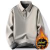 Men's Winter Striped Mock Shirt Collar Fleece Sweater