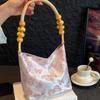 New Chinese niche velvet embossed dark pattern versatile armpit bag, high-end retro foreign style wooden beads, shoulder hand bag