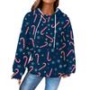 Mote løs hettegenser for kvinner, langermet genser med snøring, drop shoulder, lomme, topp med juleprint