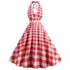 Women's Retro Hepburn-Style Dress With Patchwork Plaid Hem And Large Skirt