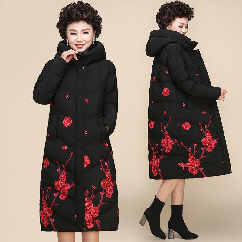 Winter Women's Printed Padded Coat Plus-size Hooded Long Padded Coat