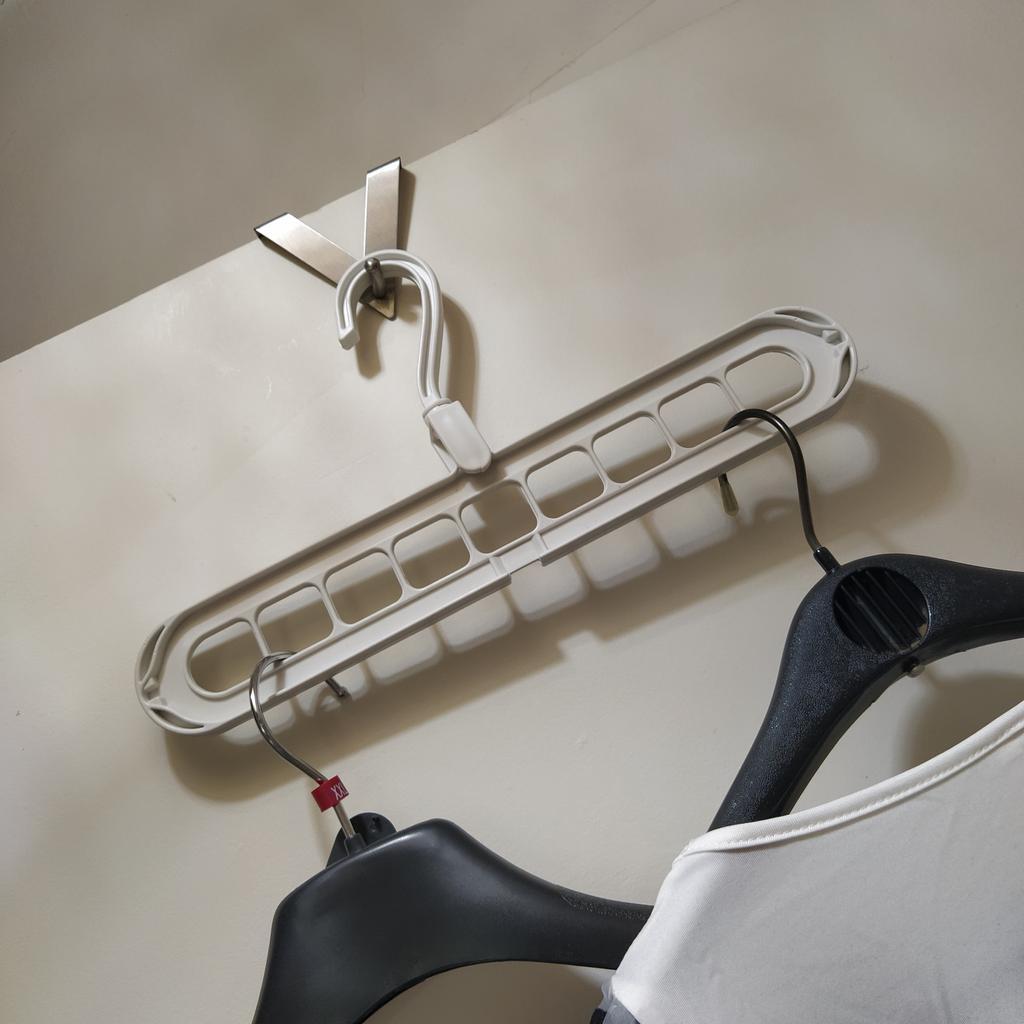 Naprawdę doskonały pomysł na garderobę, ale przede wszystkim na garderobę. Szukałem sposobu, aby zachować porządek w różnych koszulach i swetrach i aby były dobrze widoczne Wieszak można używać zarówno w pionie, jak i w poziomie w zależności od potrzeb i wymiarów szafy