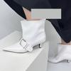Botas femininas de bico fino, salto médio, salto alto, fivela, botas Chelsea femininas, nova tendência de inverno 2024, calçados góticos