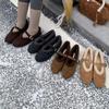 Japanese velvet Boken shoes women's 2025 autumn and winter new one-word belt Mary Jane Doudou single shoes flat-soled maternity cotton shoes