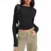 Móda Ženy Top s pruhmi Zebra Štýlový Dlhý rukáv Bočné Sťahovacie Šnúrky Crop Tops Jeseň Nový okrúhly golier Pulóver Topy Tričko Lady