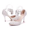 Satin Fabric Pearl Rhinestone Chain Women Sandals Wedding Bride Crystal 8 .5cm High Heel Shoes 41 42 43 Size Zipper Woman Shoes