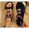 Bohem Düz Tabanlı Kadın Sandaletleri, Yuvarlak Başlı Boncuklu Çiçekli Plaj Ayakkabıları, Yaz Modası Nefes Alabilen Günlük Kadın Sandaletleri